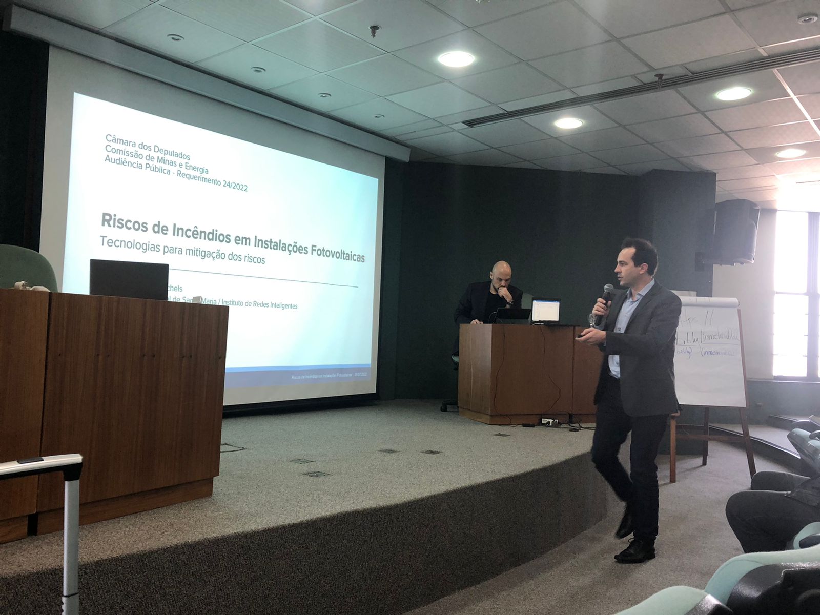 O professor Leandro Michels, do Instituto de Redes Inteligentes (INRI) do Centro de Tecnologia da UFSM, participou, na manhã do dia 06 de junho, da Audiência Pública “Riscos de incêndio em instalações de geração fotovoltaica de energia”, junto à Comissão de Minas e Energia da Câmara dos Deputados.