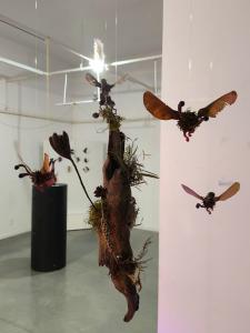 Está em exposição até esta sexta-feira (29), na Sala Cláudio Carriconde (localizada no prédio 40 do campus sede), a mostra “Bioimaginário Anômalo: Entre Criaturas, Máscaras e Subjetividades”. Ela é composta por 15 obras de autoria de Frederick Rodriguez, mestrando em Artes Visuais pela UFSM. As obras consistem em esculturas de criaturas e bichos construídos com materiais orgânicos, máscaras híbridas e instalações interativas que exploram a multiplicidade de subjetividades. A professora Karine Perez, do Departamento de Artes Visuais, é responsável pela curadoria e exepografia.